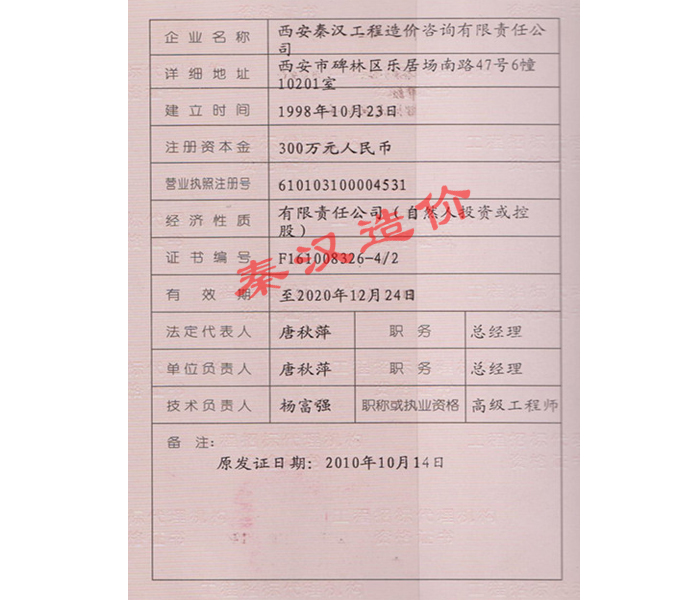 您好,歡迎您訪問(wèn)西安秦漢工程造價(jià)咨詢有限責(zé)任公司官方網(wǎng)站!咨詢熱線:029-81204573