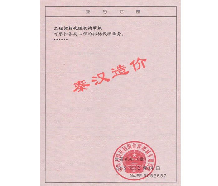 工程招標(biāo)代理機(jī)構(gòu)甲級(jí)資格證書(shū)